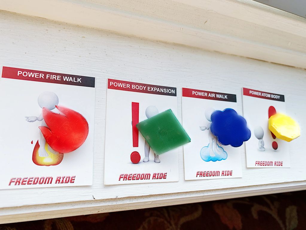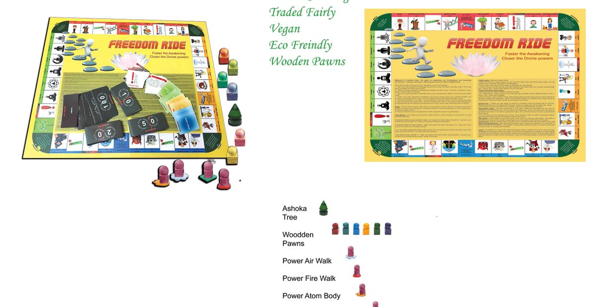 Power to walk on fire, Power to body extension, Power to walk in air and Power to make atom size body. These superpowers are attched at the base of each pawn when they arrive at the superpower spot. So before starting the game, keep the superpowers matched to their locations as in the image right on the game board itself.