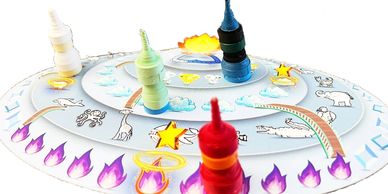 1. Choose a pawn. Roll only the single wooden dice provided. Whichever place a player is sitting will be the starting point for that player. Beginning will be the last concentric circular path made from fire and ice.